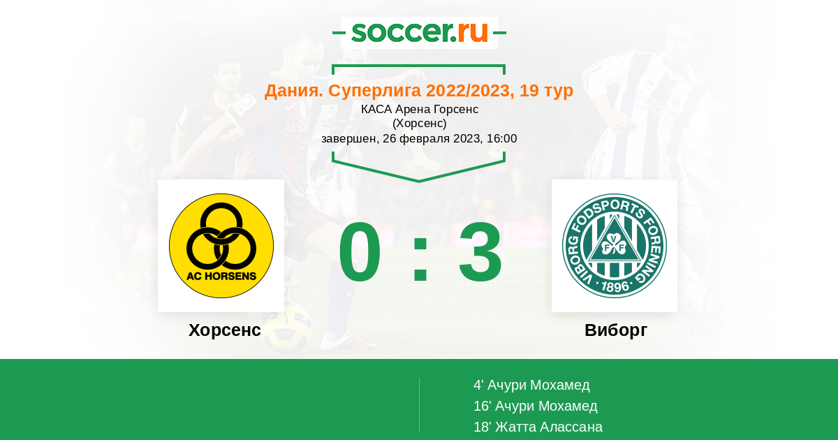 | Хорсенс | 6:6 | 1:2 | 5:4 |