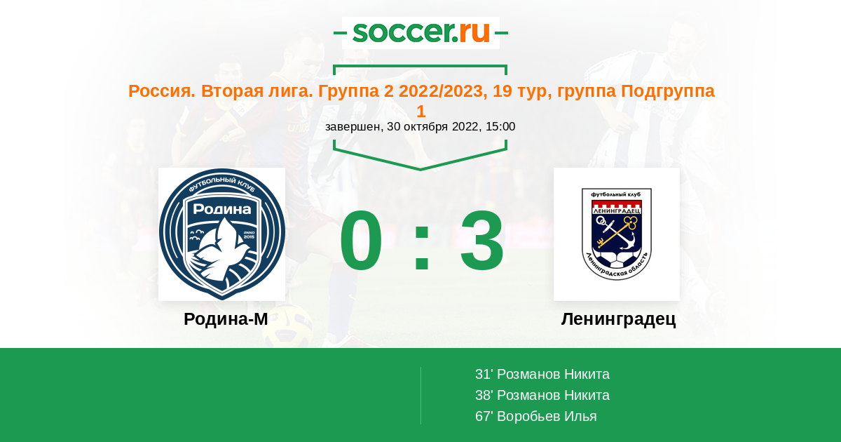| Родина-М | 0:7 | 0:0 | 0:7 |