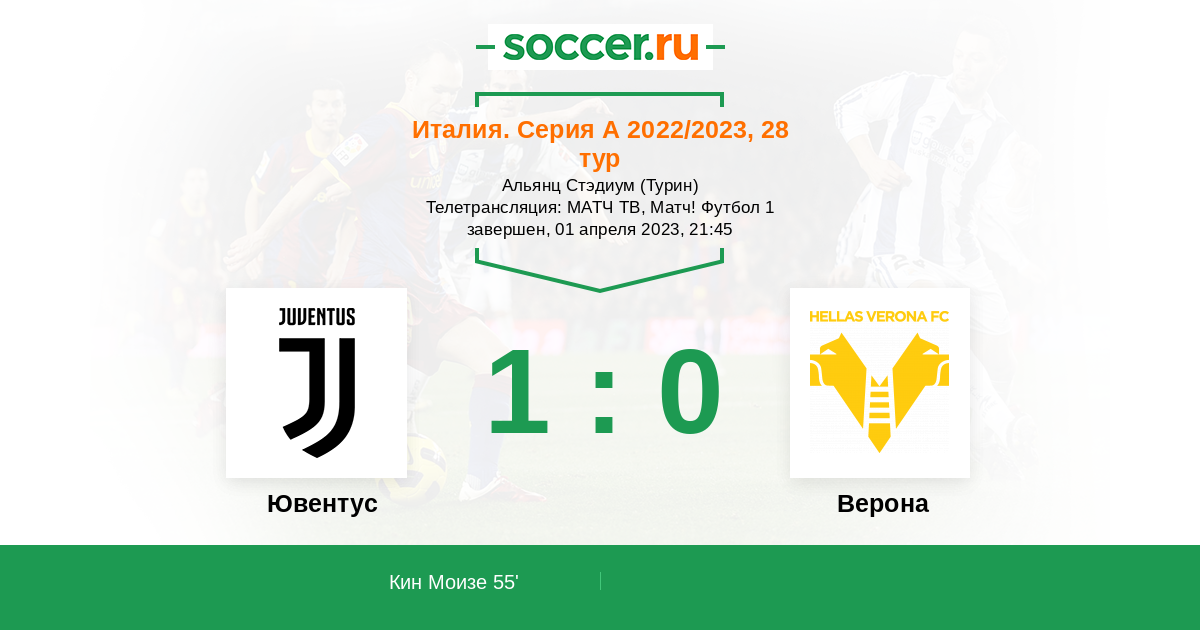 Турин, Альянц Стэдиум, зрителей: 40105 Телетрансляция: МАТЧ ТВ, Матч! Футбол 1