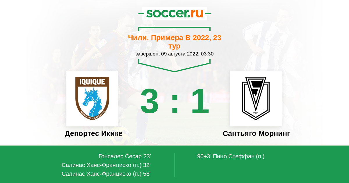 | Депортес Икике | 20:20 | 13:10 | 7:10 |