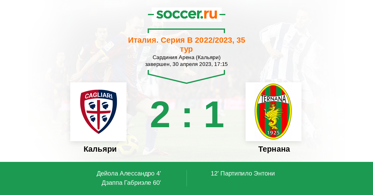 | Кальяри | 2:2 | 1:0 | 1:2 |