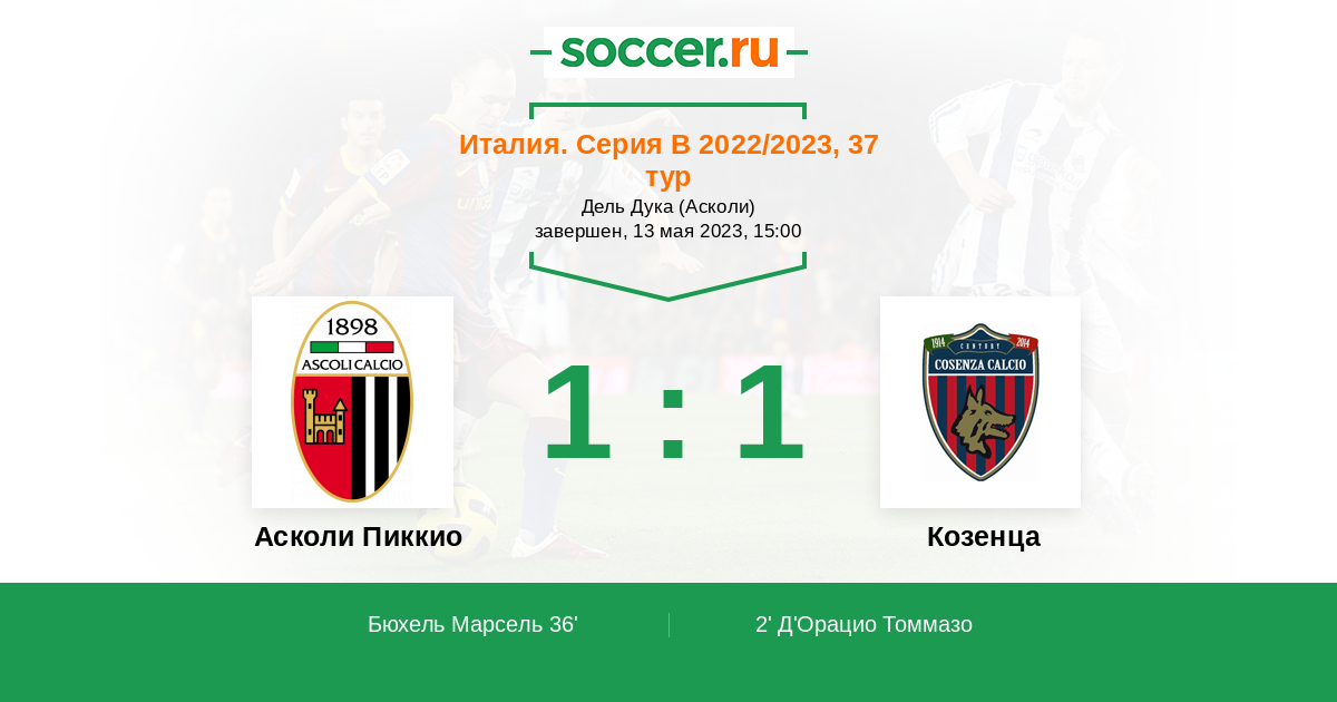 | Асколи Пиккио | 17:17 | 9:9 | 8:8 |