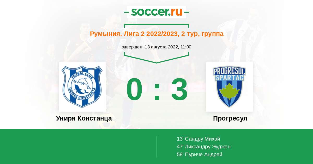 | Униря Констанца | 0:9 | 0:9 | 0:0 |