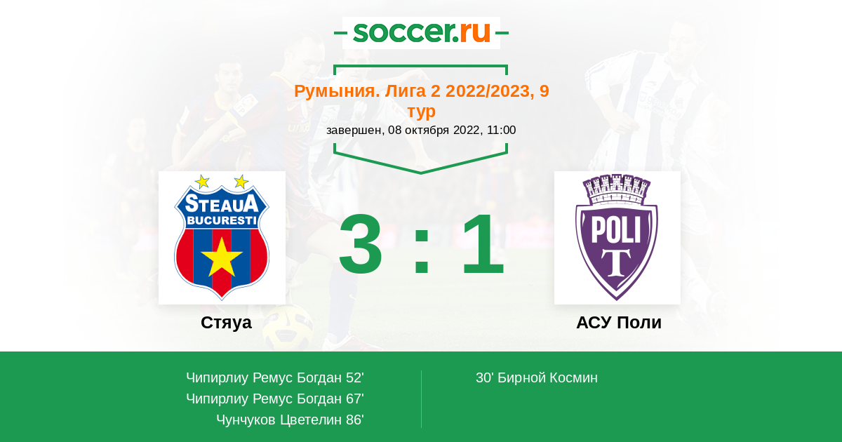 | Стяуа | 1:2 | 0:0 | 1:2 |