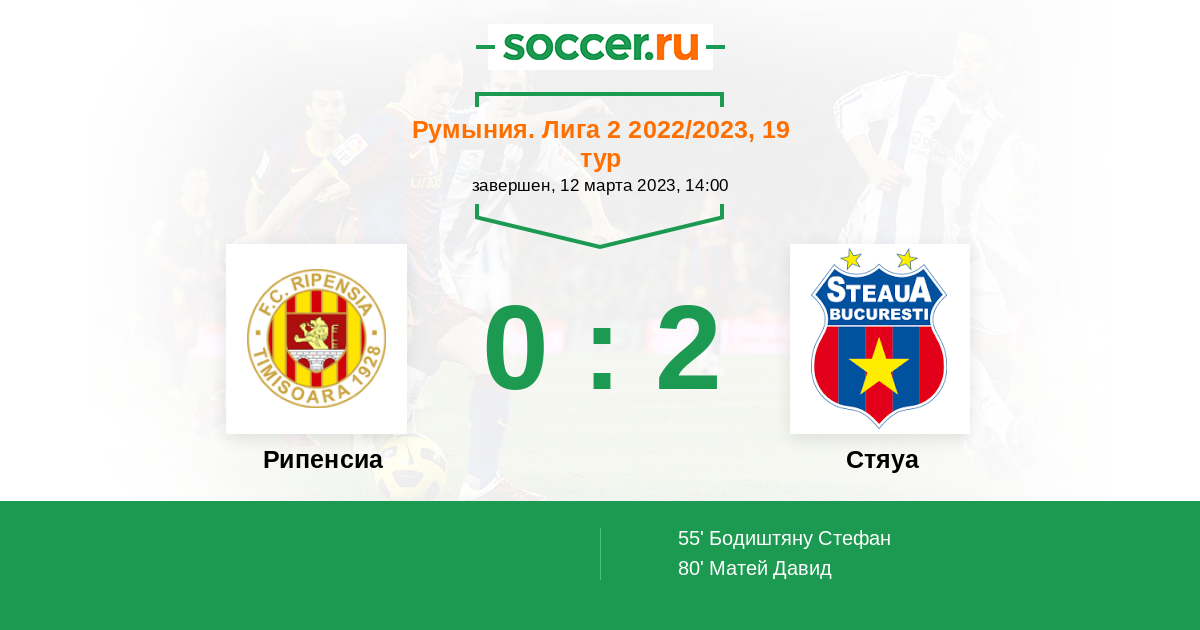 | Стяуа | 2:0 | 2:0 | 0:0 |