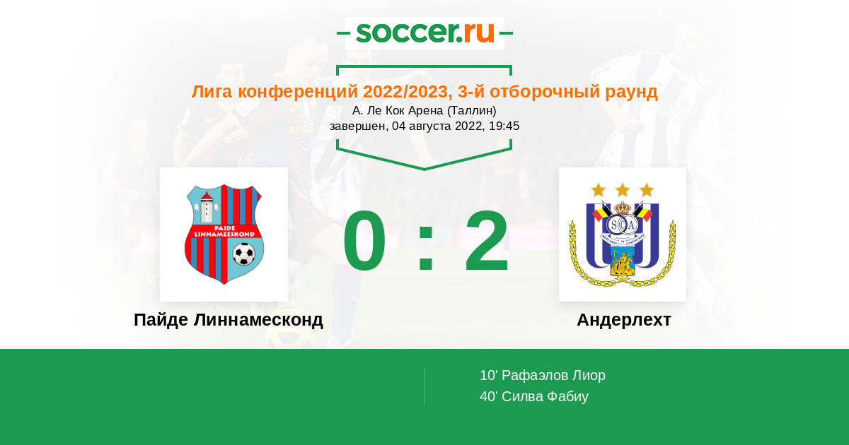 | Пайде Линнамесконд | 0:3 | 0:0 | 0:3 |