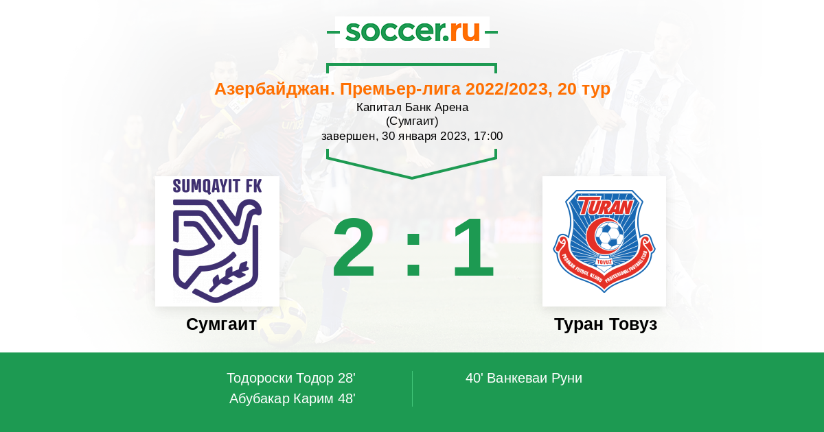 | Сумгаит | Туран Товуз | |