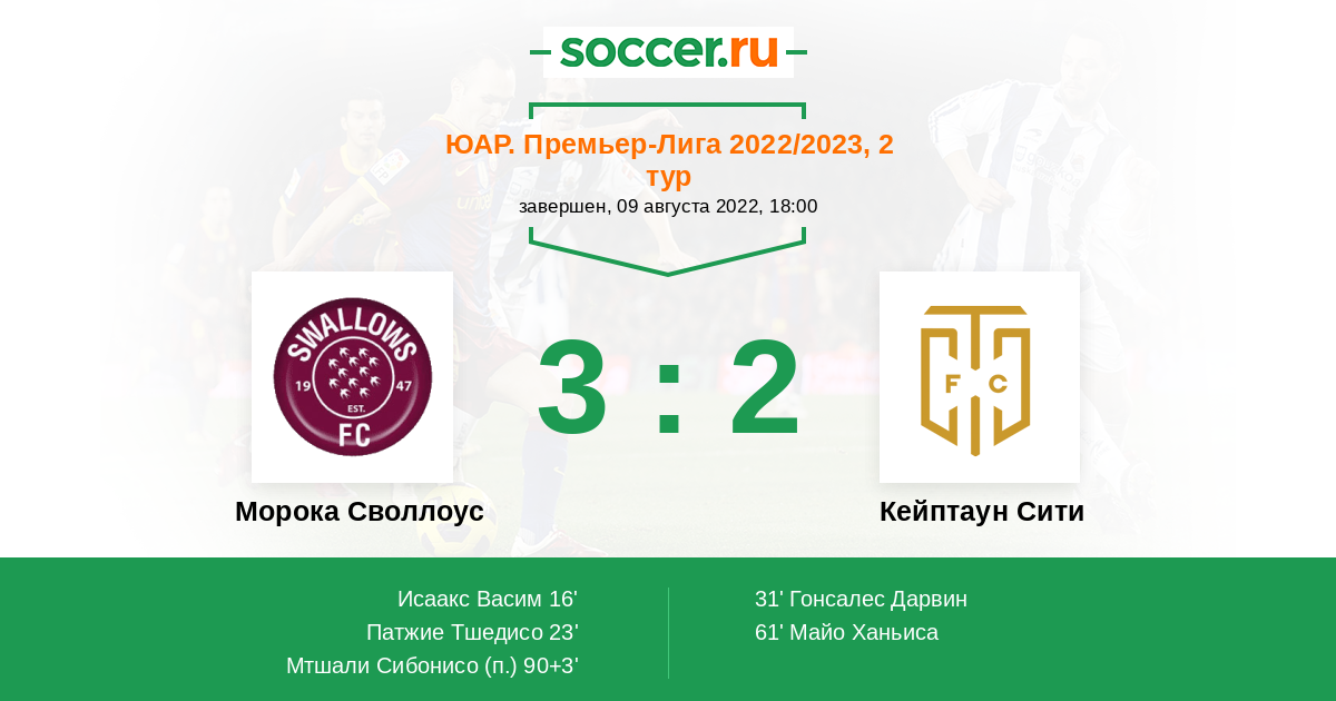 Морока Своллоус 2:3 Кейптаун Сити