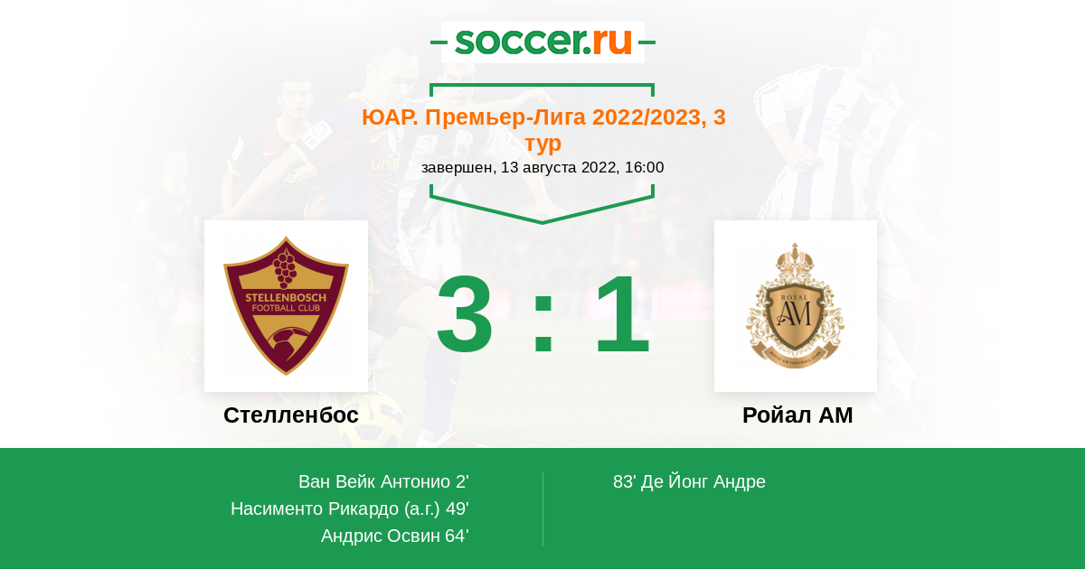 | Стелленбос | 9:7 | 5:2 | 4:5 |