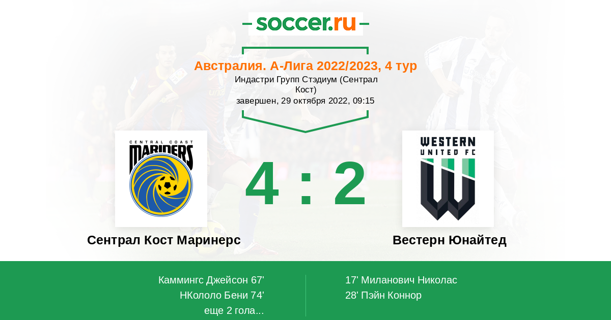 | Сентрал Кост Маринерс | Вестерн Юнайтед | |