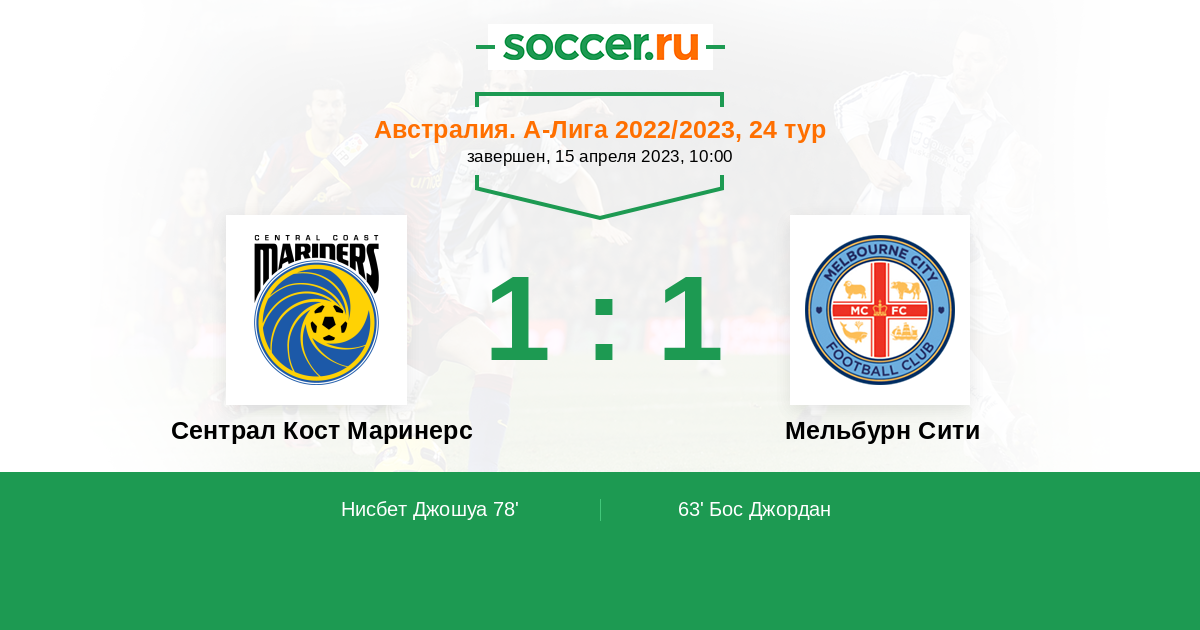 | Мельбурн Сити | 66:57 | 38:25 | 28:32 |