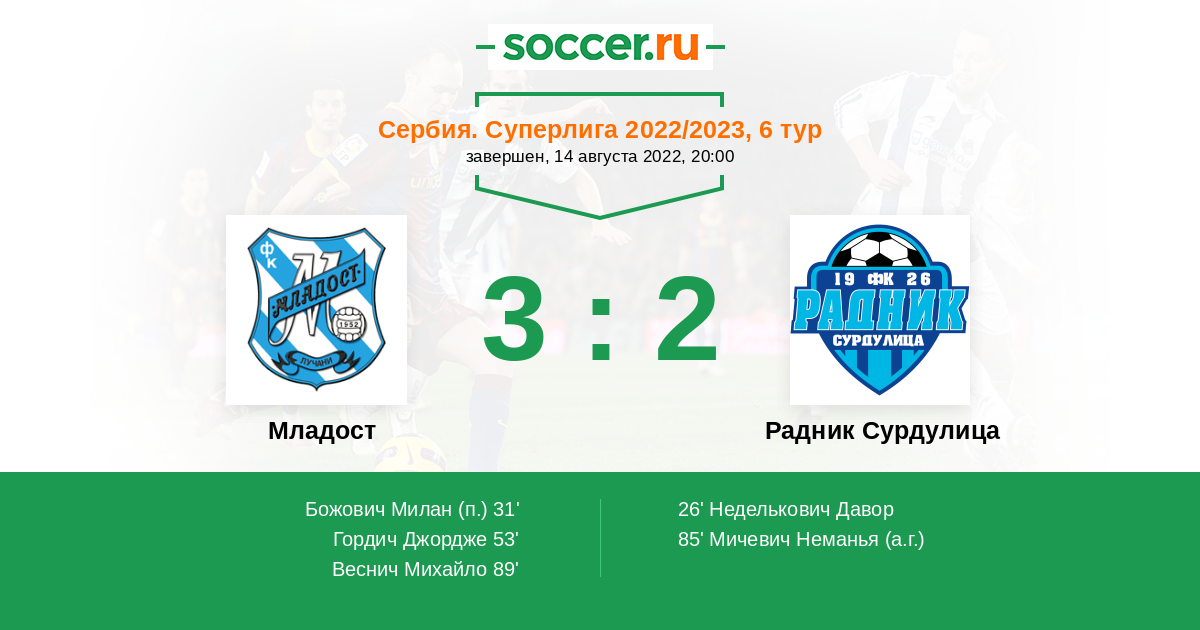 | Сербия. Суперлига | 22 | 9 | 6 | 7 |