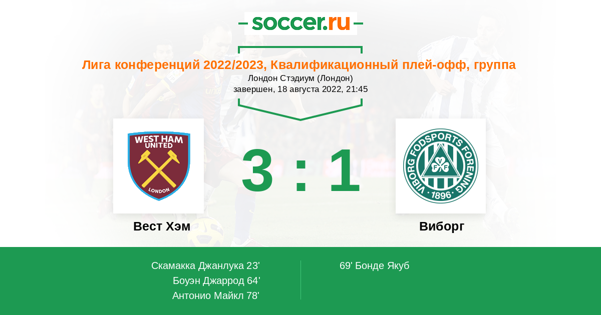 | Вест Хэм | Виборг | |