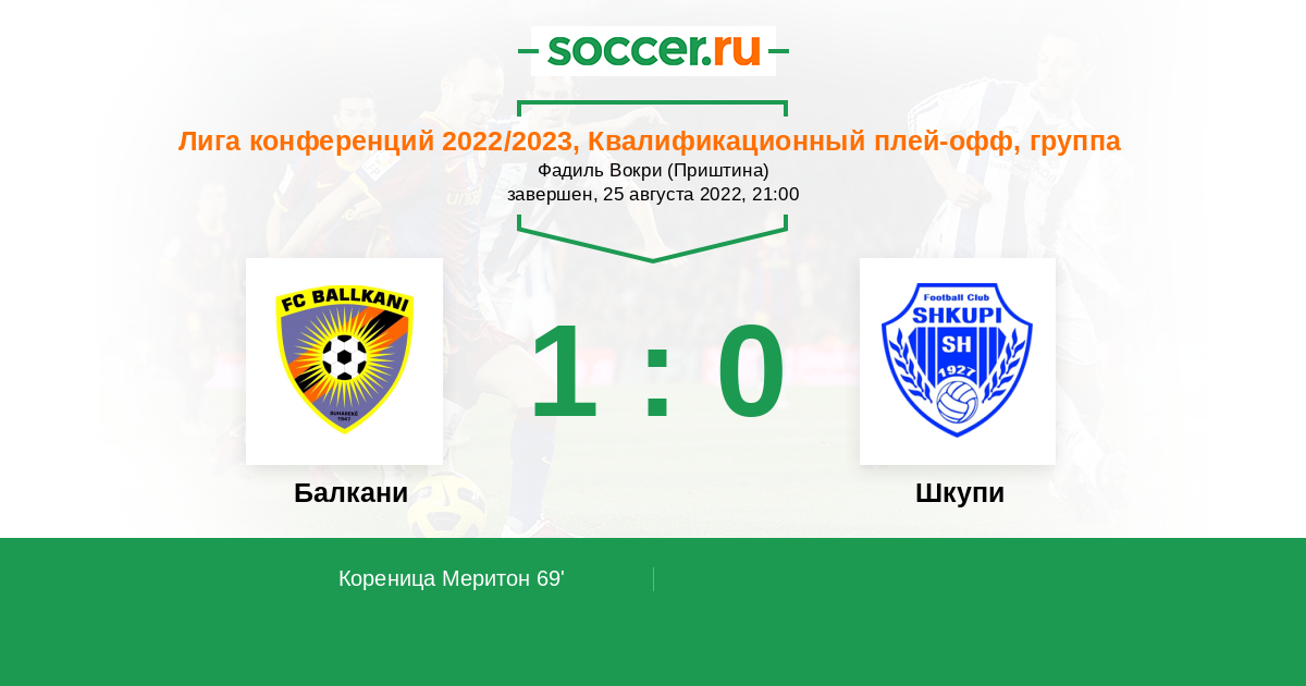 | Балкани | 2:1 | 0:0 | 2:1 |