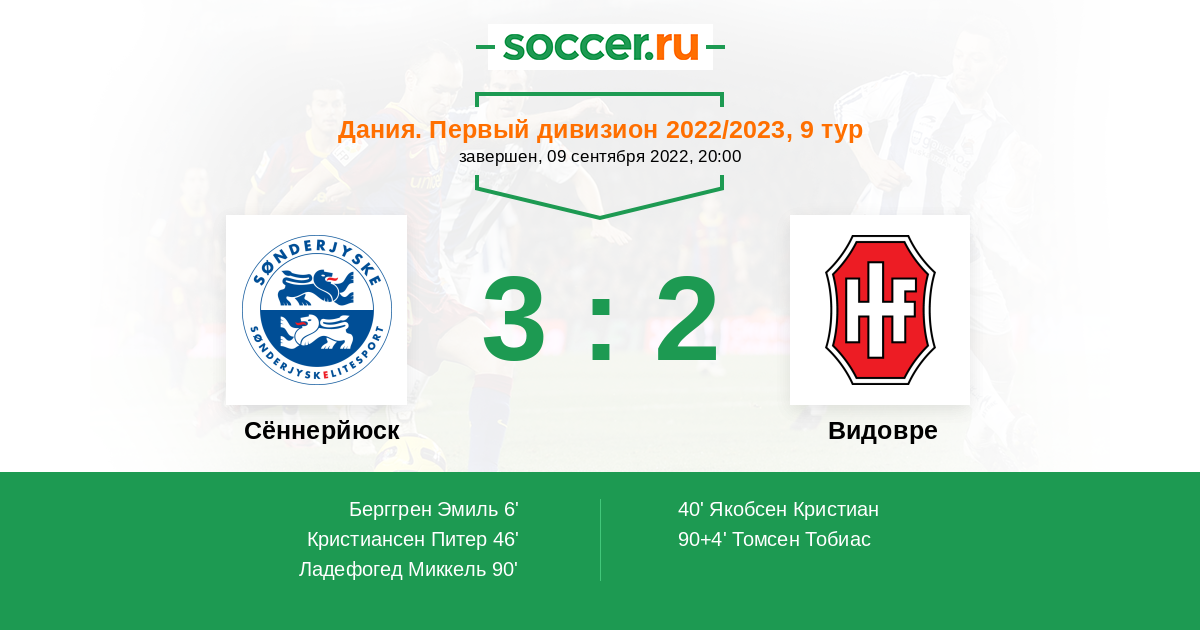 | Сённерйюск | 3:6 | 0:3 | 3:3 |