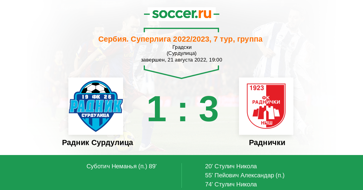 | Радник Сурдулица | 23:38 | 9:13 | 14:25 |