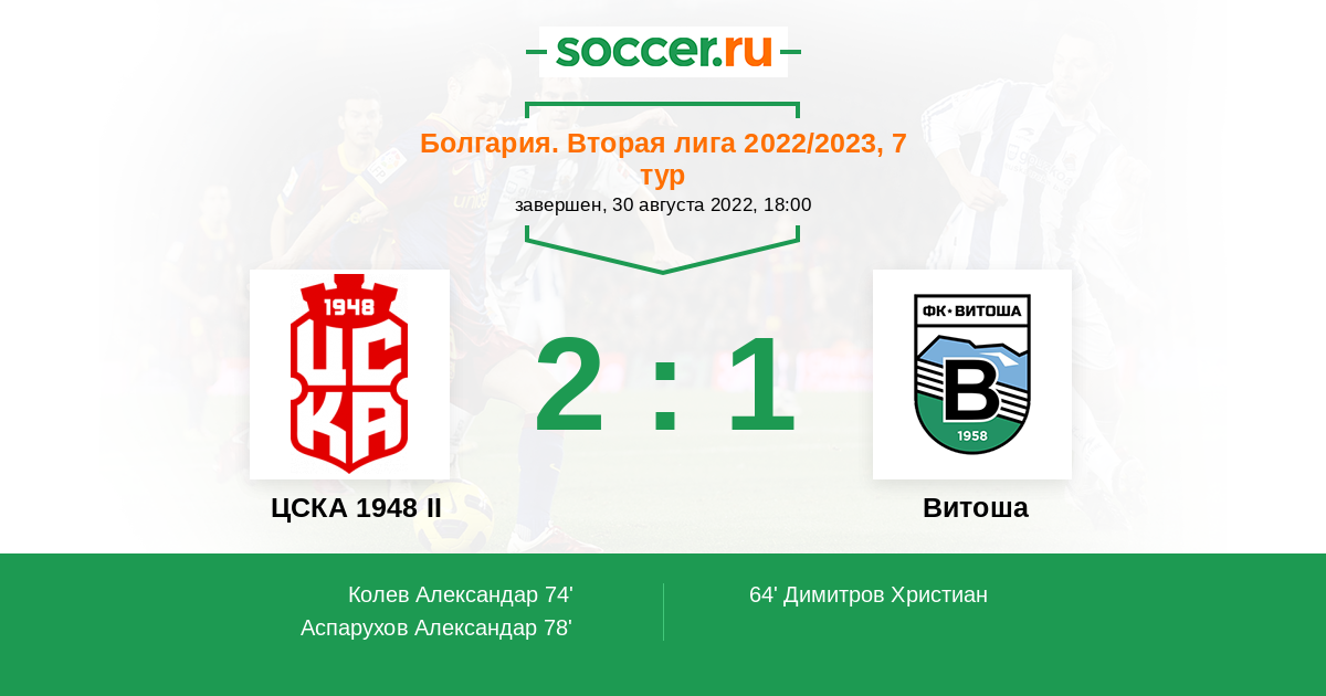 | ЦСКА 1948 II | 1:2 | 0:0 | 1:2 |