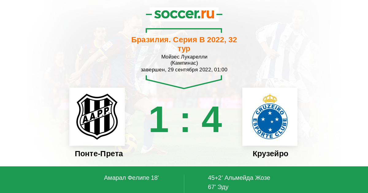 | Крузейро | 53:26 | 34:13 | 19:13 |