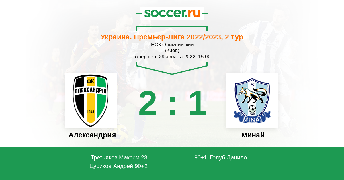 | Минай | 6:13 | 5:3 | 1:10 |
