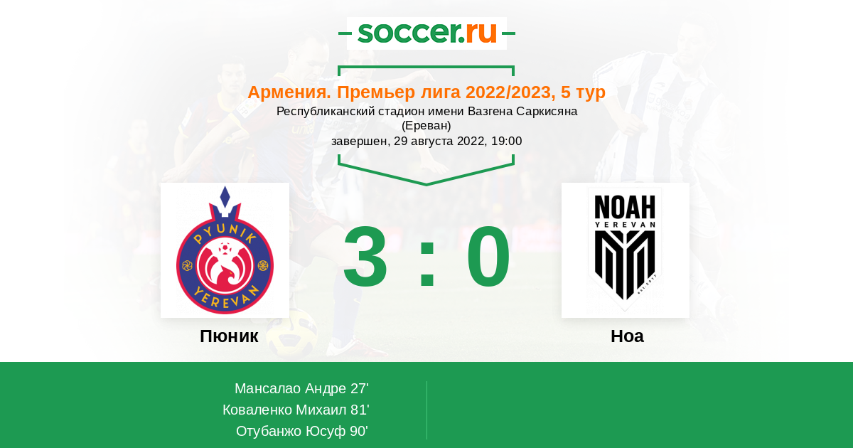 Последние 5 игр дома Ноа