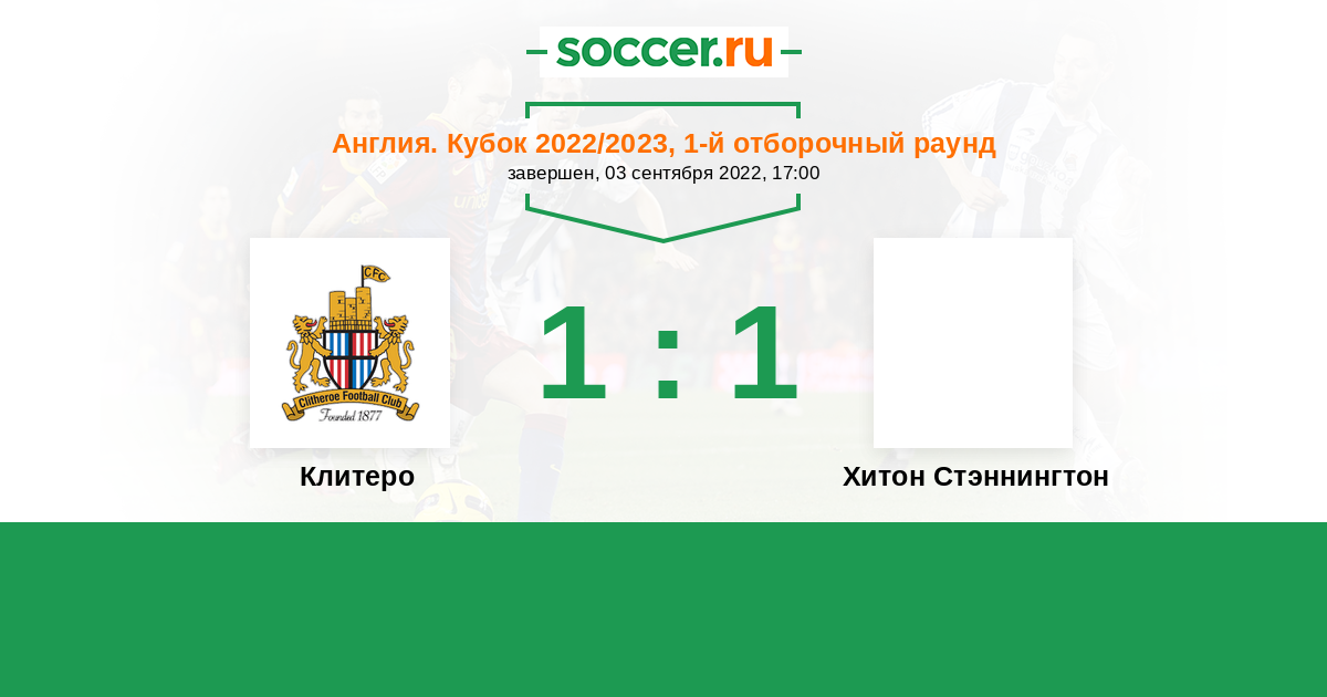 | Клитеро | 2:1 | 0:0 | 2:1 |