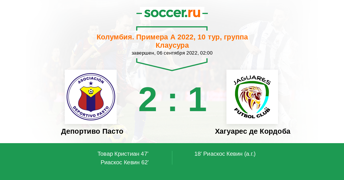 | Депортиво Пасто | Хагуарес де Кордоба | |