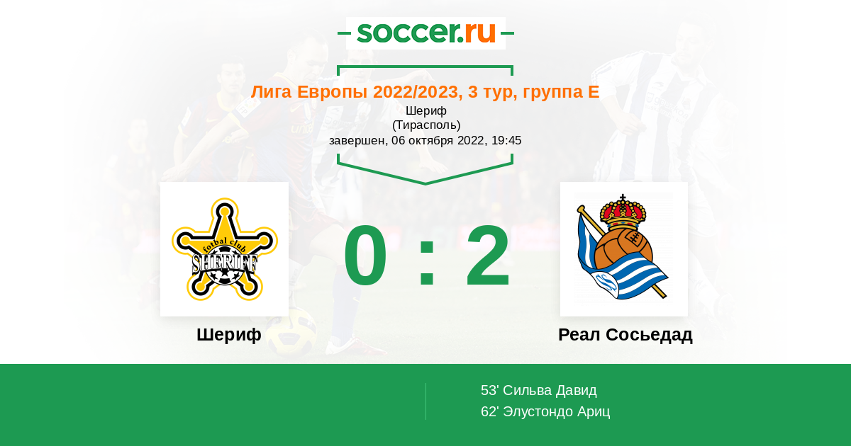 | Шериф | 0:3 | 0:0 | 0:3 |
