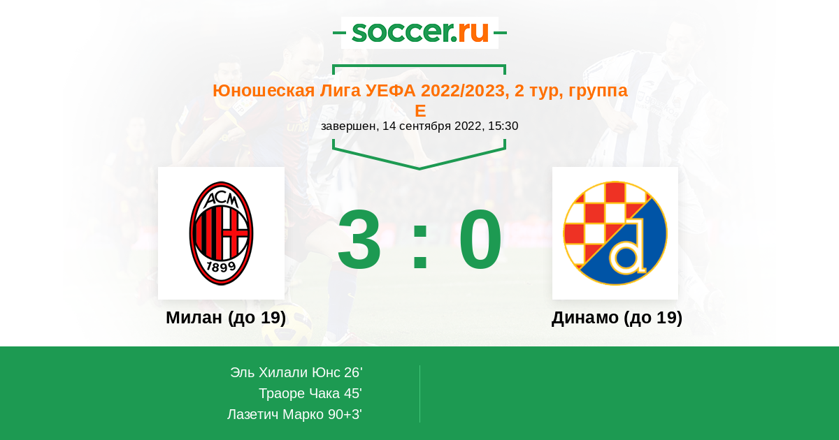 | Милан (до 19) | 2:1 | 0:0 | 2:1 |