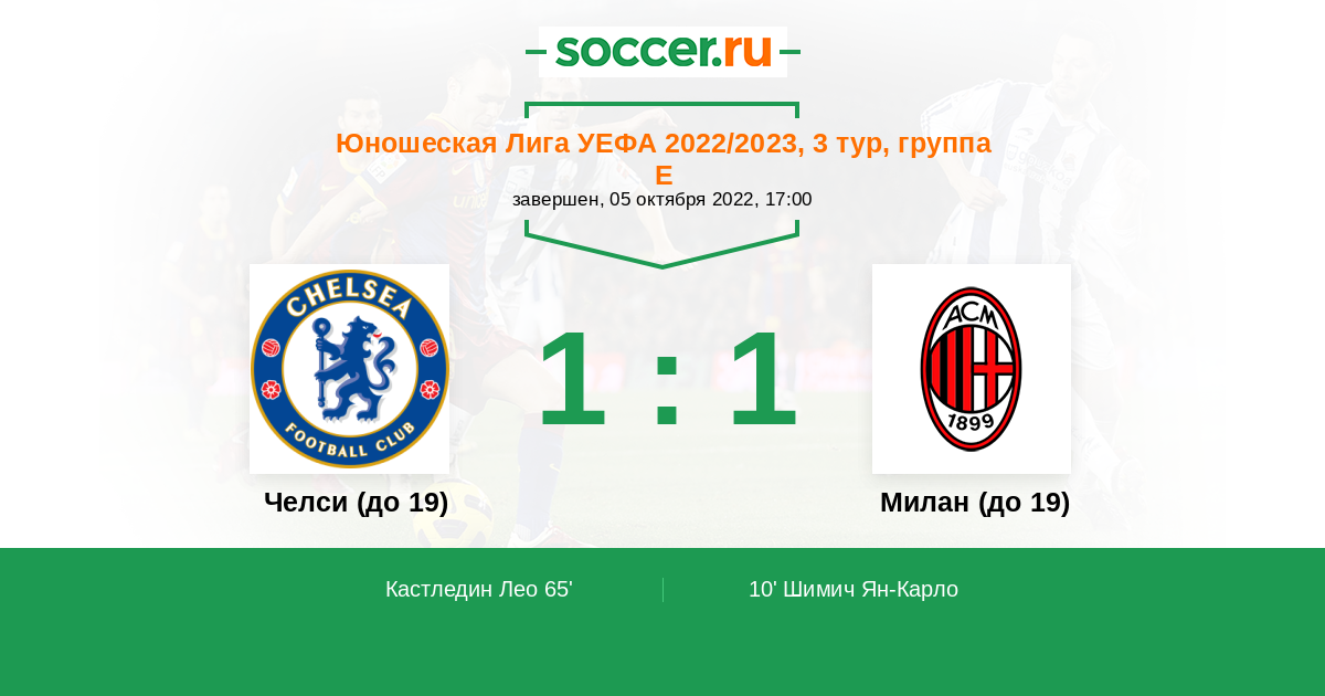 | Челси (до 19) | Милан (до 19) | |