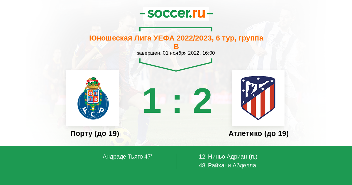 | Порту (до 19) | Атлетико (до 19) | |