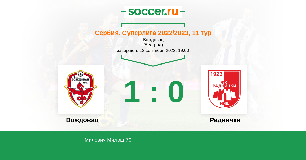 | Сербия. Первая лига | 2 | 1 | 0 | 1 |