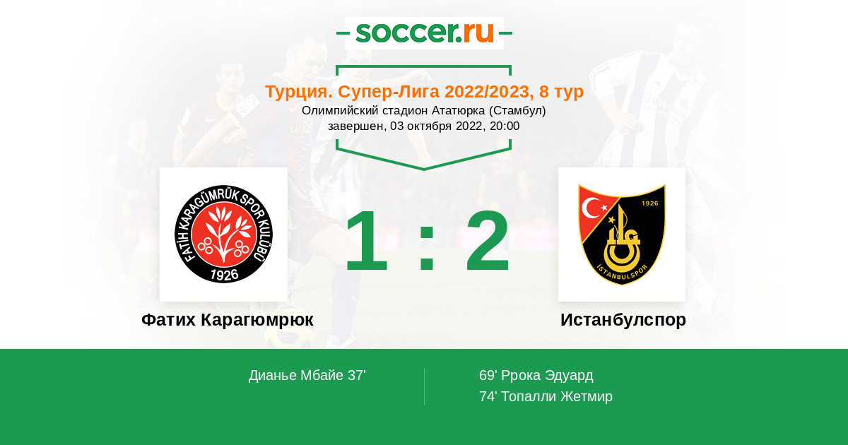 Фатих Карагюмрюк 3:0 Истанбулспор