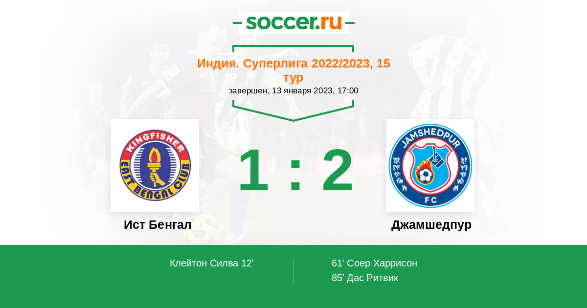 | Джамшедпур | 8:8 | 7:6 | 1:2 |