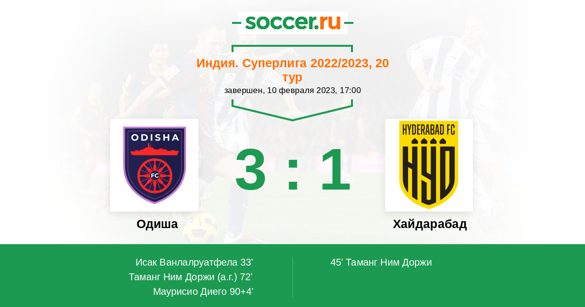 | Индия. Суперлига | 9 | 4 | 4 | 1 |
