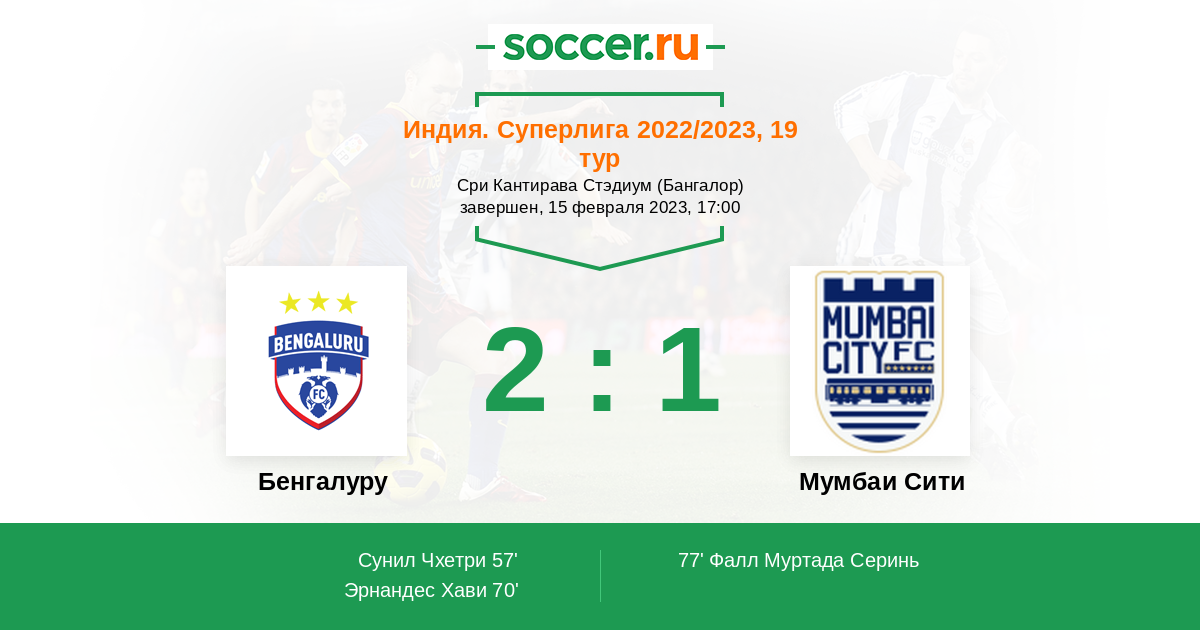 | Бенгалуру | Мумбаи Сити | |