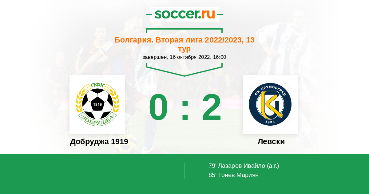 | Болгария. Вторая лига | 1 | 0 | 1 | 0 |