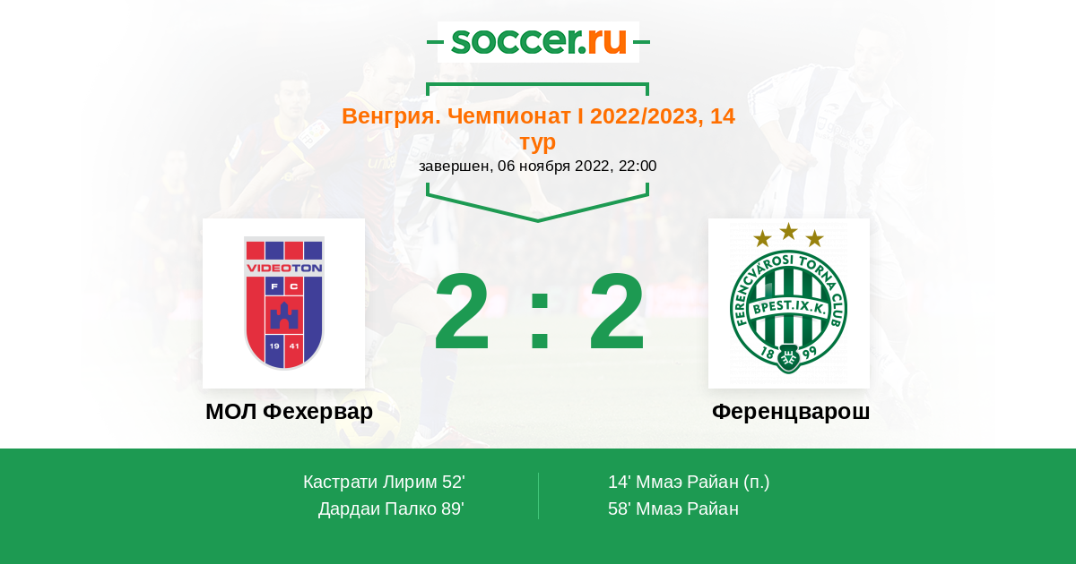 | МОЛ Фехервар | 67:109 | 36:52 | 31:57 |