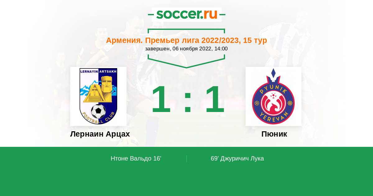 | Лернаин Арцах | 0:9 | 0:6 | 0:3 |