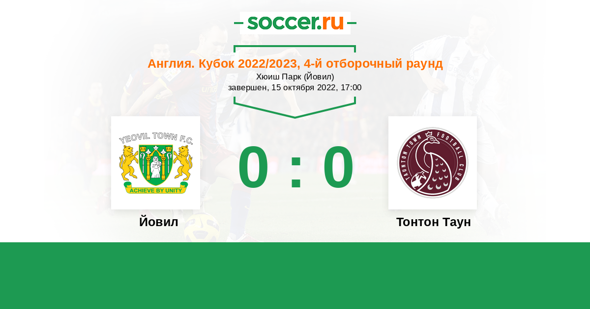 | Тонтон Таун | 1:0 | 1:0 | 0:0 |