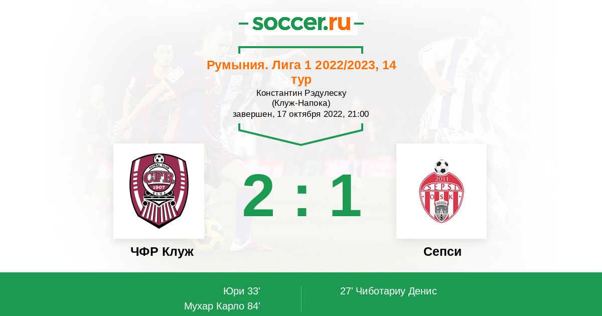 ЧФР Клуж 2:0 Сепси