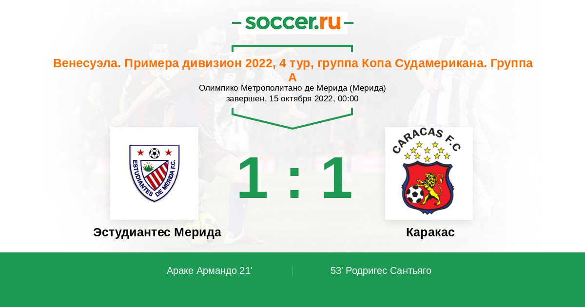 | Эстудиантес Мерида | 51:83 | 28:39 | 23:44 |