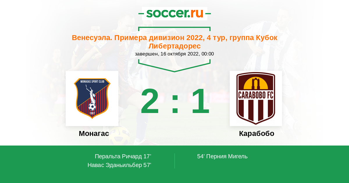 | Карабобо | 66:50 | 41:21 | 25:29 |