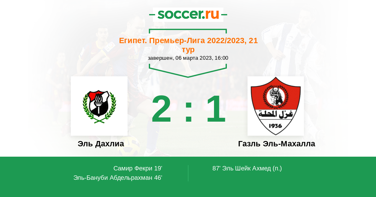 | Эль Дахлиа | 1:2 | 0:0 | 1:2 |