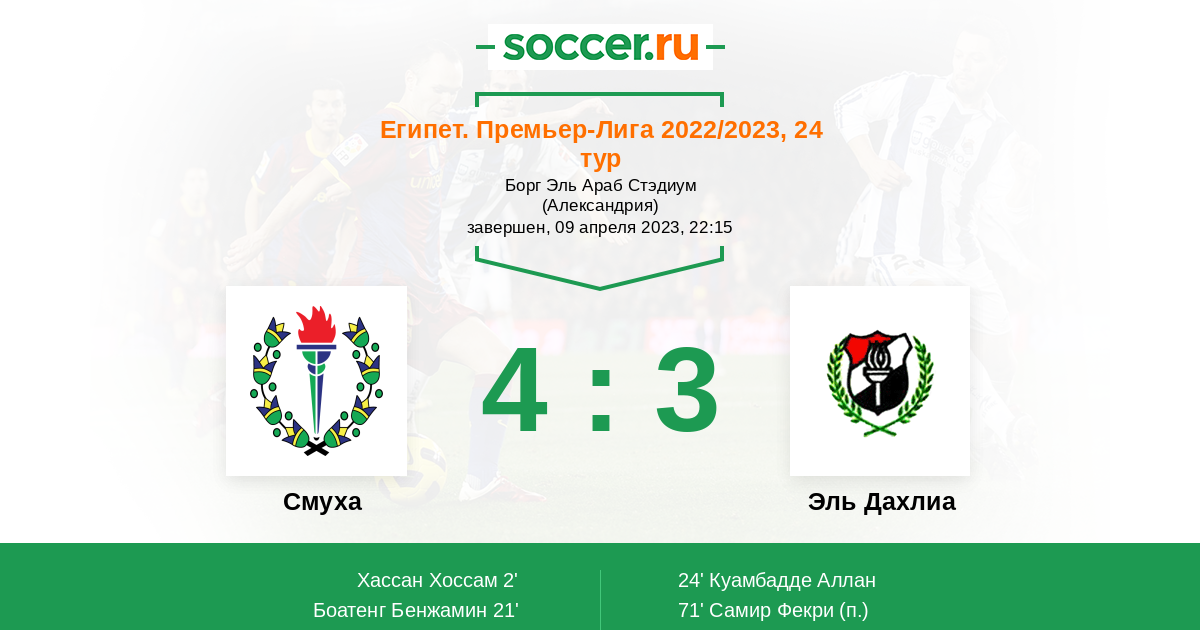 | Эль Дахлиа | 3:6 | 0:2 | 3:4 |