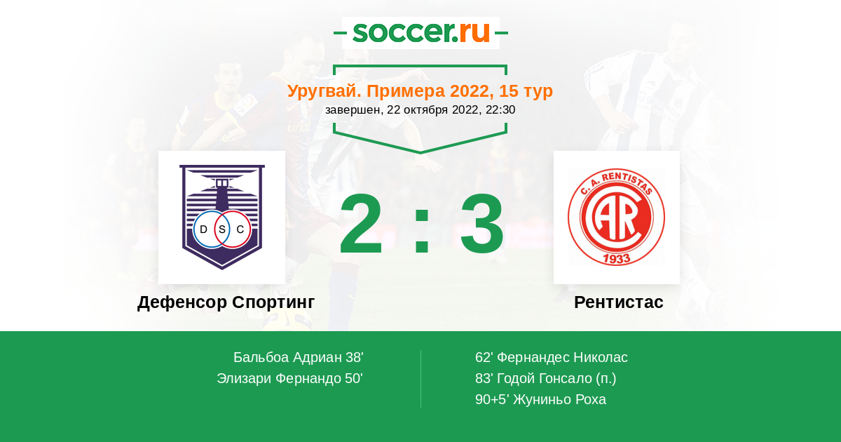 | Дефенсор Спортинг | 30:21 | 12:8 | 18:13 |