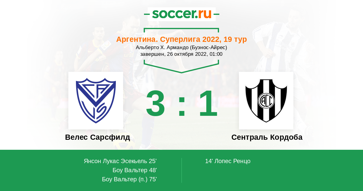 | Велес Сарсфилд | Сентраль Кордоба | |