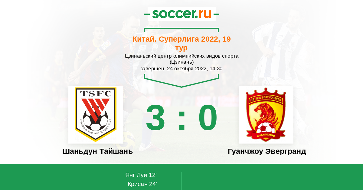 | Шаньдун Тайшань | Гуанчжоу Эвергранд | |