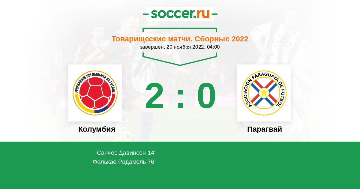 | Колумбия | 23:16 | 15:9 | 8:7 |