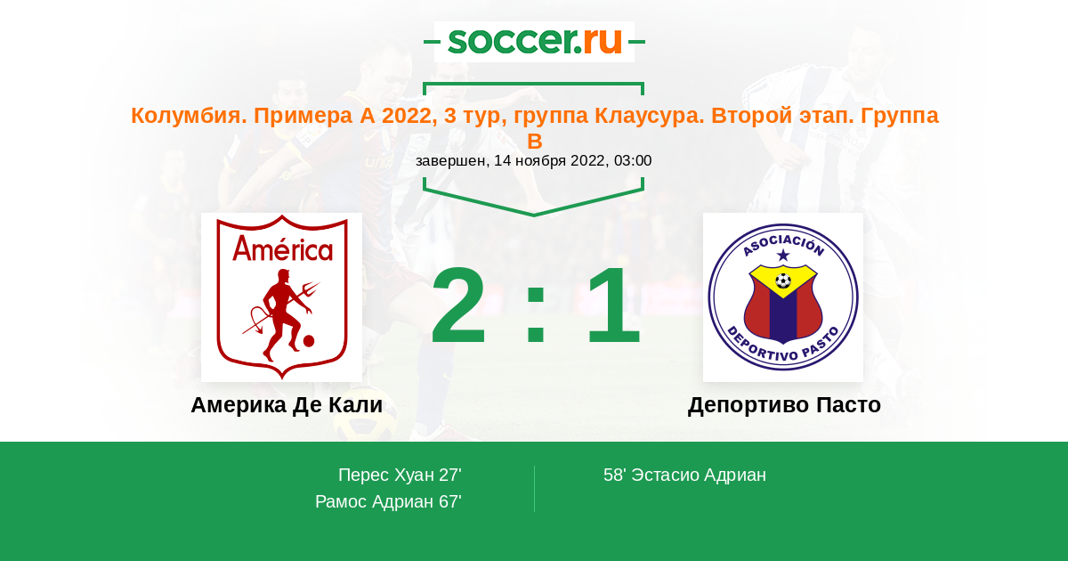 | Америка Де Кали | Депортиво Пасто | |