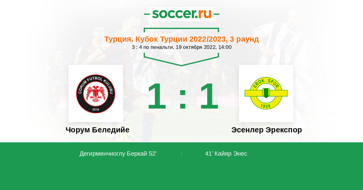 | Эсенлер Эрекспор | 8:6 | 5:3 | 3:3 |
